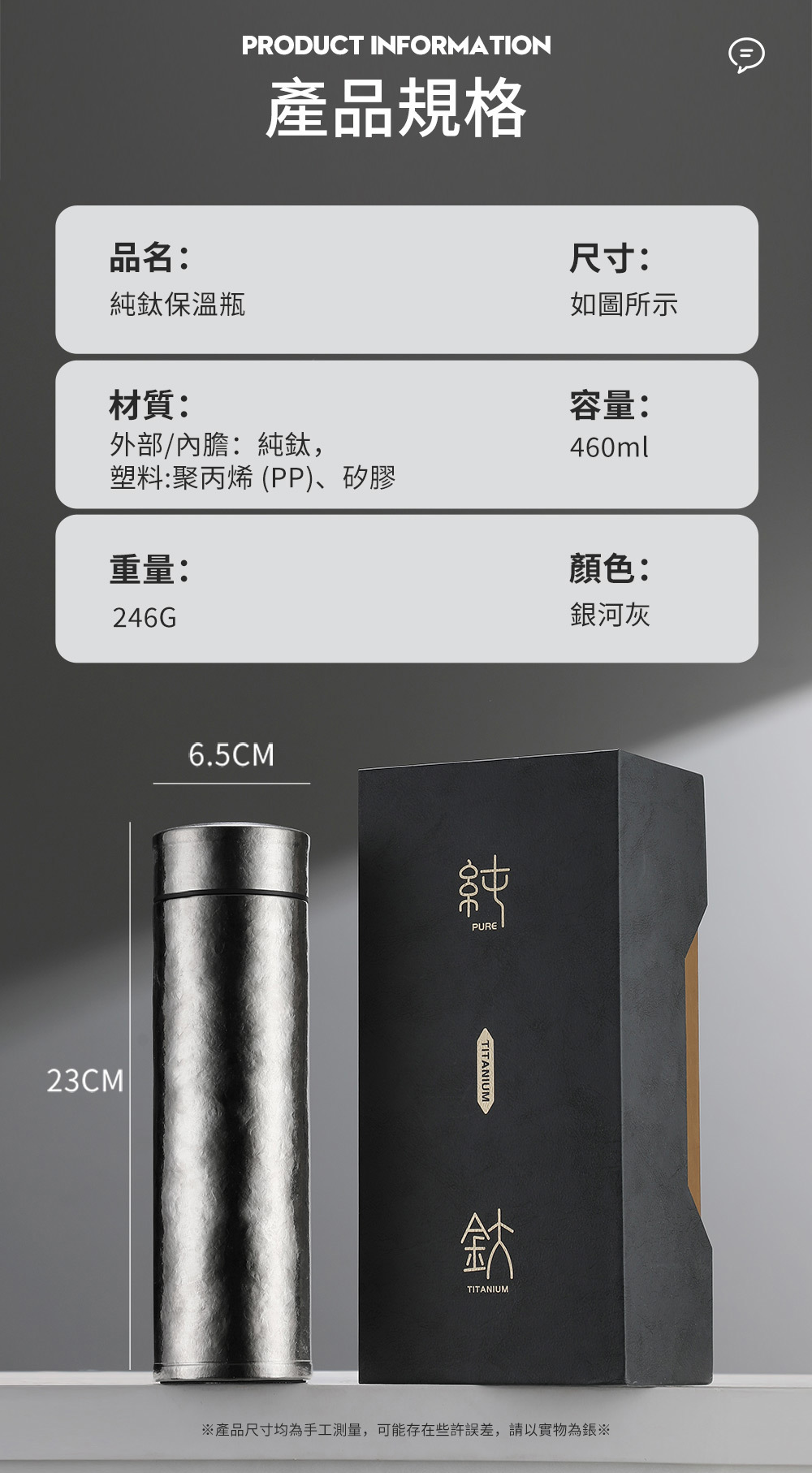 純鈦保溫瓶460mll(耐酸鹼/抗腐蝕/超輕量)