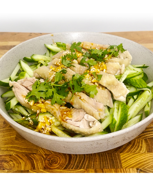 口水雞(四川話:「涼拌雞」或「麻辣雞」),是一道來自中國四川的經典冷盤菜,也廣泛出現在川菜館中。它以麻、辣、香、鮮、嫩著稱,名字雖然聽起來有點「口水」,其實是形容這道菜好吃到讓人流口水,而不是因為它真的跟口水有關。 口水雞使用了典型的四川調味:花椒、辣椒油、醋、蒜、芝麻、醬油等調成的「紅油料汁」,口感層次豐富,吃起來麻而不苦、辣但不燥。 作為一道冷菜,口水雞尤其適合夏天食用,開胃又清爽。吃起來不油膩,反而刺激食慾。