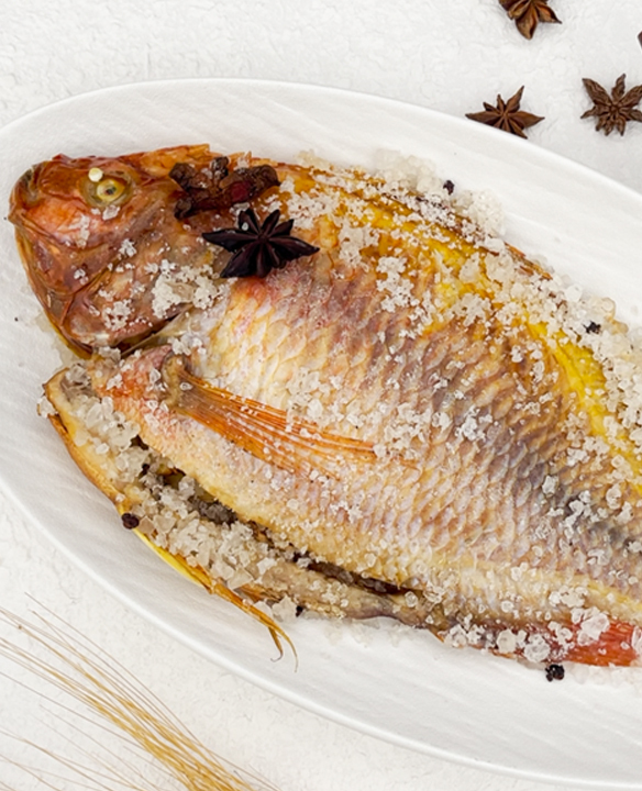 「鹽焗魚」是一道非常受歡迎的中式料理,以「鹽」作為主要調味和烹調手法,呈現出食材原味。這道菜的特色是透過大量粗鹽包裹整條魚,用焗(烤)的方式將魚慢慢熟成,使其肉質鮮嫩、原味濃郁且沒有多餘油膩感。今天我們要用鍋子就能完成這道鹽焗紅尼羅唷~鹽焗技術起源於廣東(尤其是客家地區),最早應用在「鹽焗雞」上,後來延伸到魚、蝦等食材。鹽焗魚在廣東、香港、台灣等地都非常流行。 魚肉沒有過多調味,靠鹽焗的方式保留魚的鮮美。口感細嫩,焗製過程中魚肉水分不易流失,保持鮮嫩。鹽焗後會有自然的焦香味,帶點鹽香,但不會死鹹。