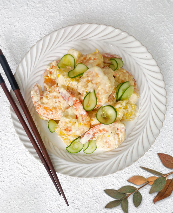 鳳梨蝦球的特色就是 「酸甜交融、酥脆彈牙、喜氣華麗」,是一道融合台式創意與宴席文化的代表性菜餚。有著酸甜清爽的風味,鳳梨帶來清新的酸甜味,搭配炸得金黃酥脆的蝦仁,形成鹹香與酸甜交織的口感。醬汁多以美乃滋為基底,讓整體更滑順、帶點奶香。今天我們用煎的方式代替炸,少油更健康! 另外用優格混合美乃滋,讓口感更清爽,搭配切薄片的小黃瓜,更能去油解膩。