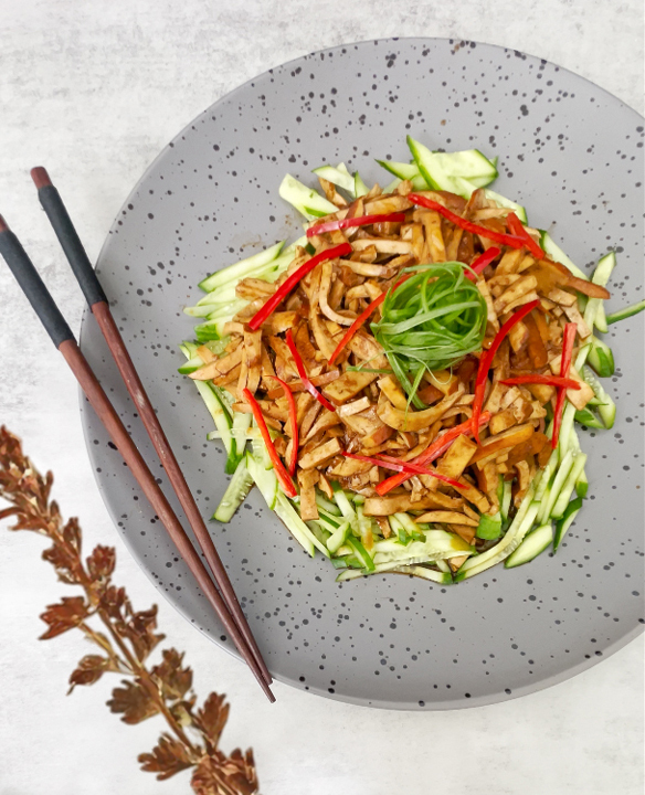 京醬豆干絲屬於一道 京味冷盤小菜,靈感來自經典的「京醬肉絲」。傳統的京醬肉絲是用豬肉絲炒甜麵醬,再搭配餅皮或蔥段食用;而豆干絲版則是用 豆干切絲代替肉絲,既保留了醬香味,又清爽健康、適合素食或想吃清淡的人。完全不含肉素食可用,但保有「京醬肉絲」的經典風味。既可以當冷盤小菜,也能配餅、饅頭或米飯。比肉絲更清爽,適合夏天或想減油的飲食。